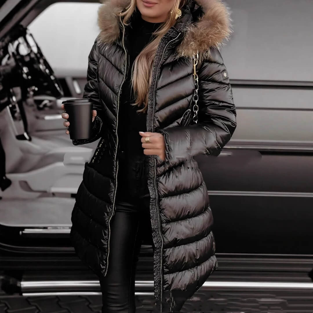 ✅ Mid-length design for balanced coverage ✅ Lush fur collar adds luxury and warmth ✅ Slim tailored fit for a flattering silhouette ✅ Insulated cotton padding for cozy protection ✅ Stylish outerwear you can wear day to night